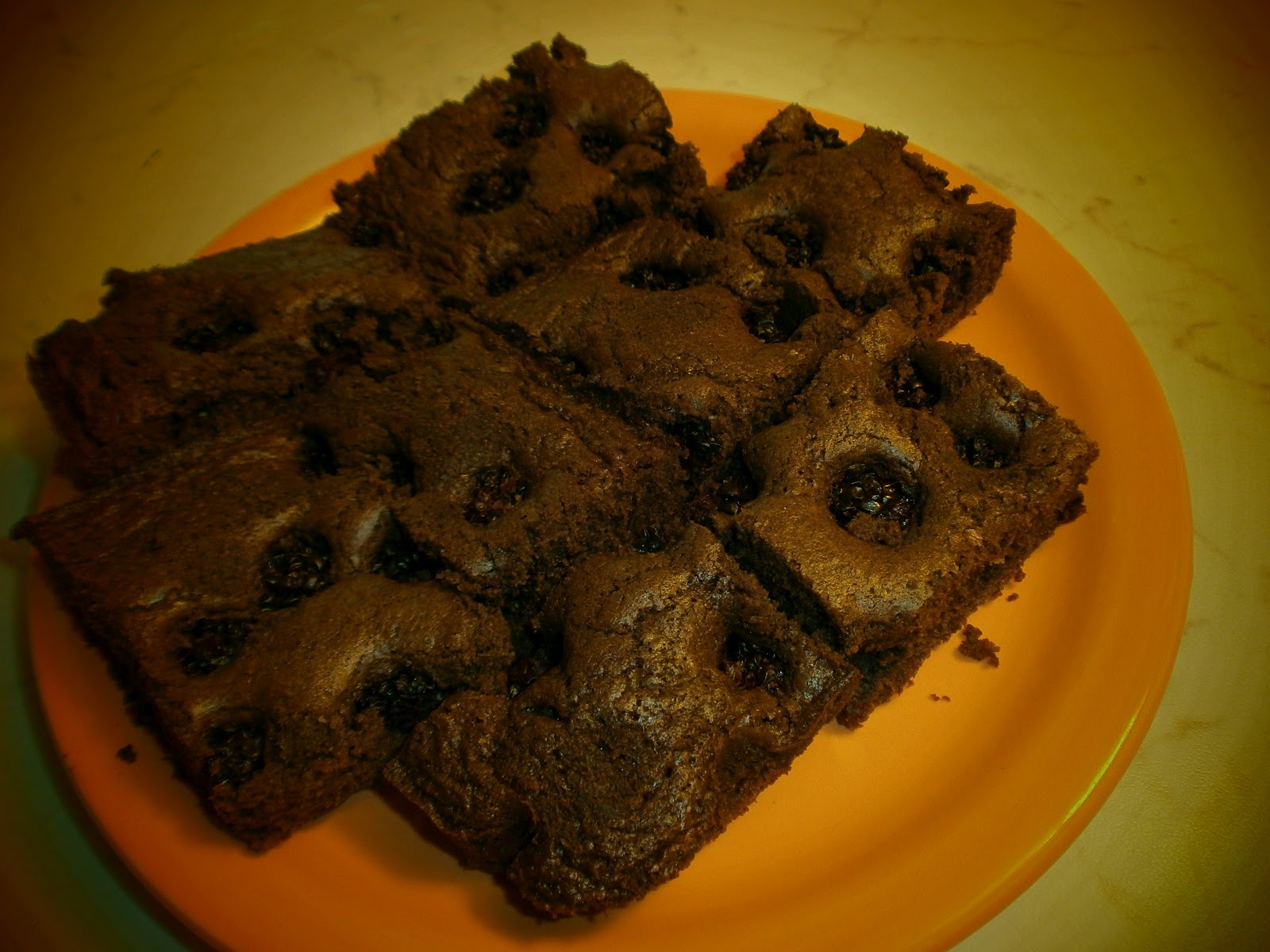 Čokoládové keksíky pomliaždime na jemno, pridáme pomleté mandle, maslo a cukor a vypracujeme až kým nedostaneme zmes ktoré sa nám už dosť lepí. Zmes dáme do plechu a dno vystelieme rovnomerne cestom a dlaňou pritlačíme ešte cesto aby poriadne sa zlepilo. Na cesto vysypeme čučoriedky.
